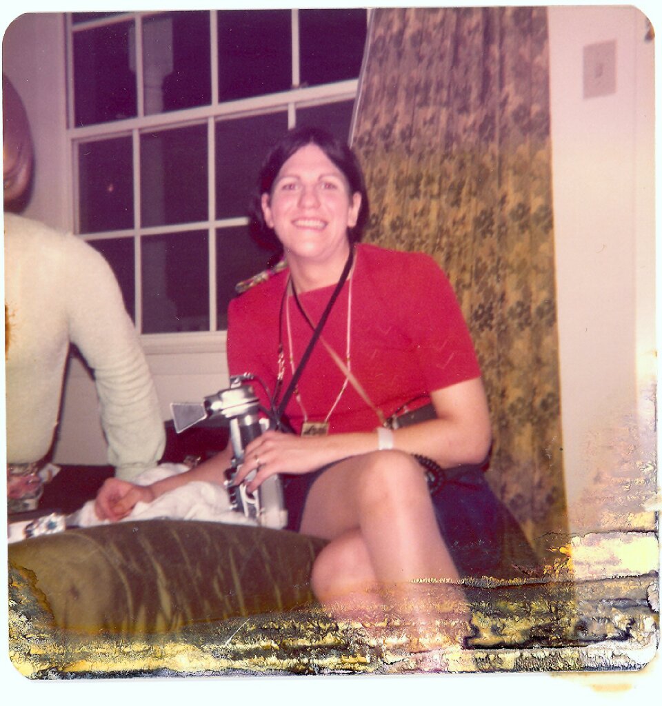 Sandy (left) and Mindy Floyd brainstorm ideas for image magazine in 1973Sandy circa 1973In my Philadelphia apartment in 1974.Headed off to Henri David’s Halloween Ball, 1974My friends Lee Brewster (left) and Wilma Sharman (right) at Mardi Gras 1974Working, camera in hand at Lee Brewster’s Mardi Gras trip in 1974With my trusty Roliflex camera working at Fantasia Fair #1 in 1975Walking down Commercial Street in P-Town at Fantasia Fair #1 in 1975Taking one for the Team. Ariadne Kane (right) talked me into having my hair styled as a demo at FF#1 in 1975Sailing on Long Island Sound in 1976. Wilma Sharman in Foreground.